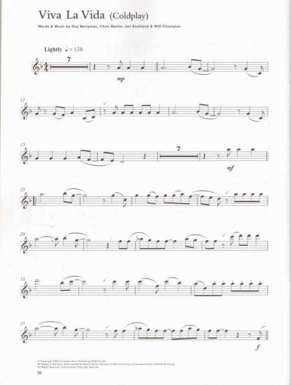 本樂譜以薩克斯風獨奏編排,精選收錄10首打入排行的閃亮歌曲:包括OneRepublic圓夢的第一支成名作(Apologize)、Adele壓倒布蘭妮、蕾哈娜等天后,躍上英國單曲榜亞軍的〈Chasing Pavements〉、英國版星光大道『X Factor』2008年冠軍女歌手Alexandra Burke 翻唱Leonard Cohen名曲並拿下英國單曲榜冠軍的〈Hallelujah〉、The Killers被滾石雜誌推崇:「像是Johnny Cash遇上Pet Shop Boys」的(Human)、Take That 被選為電影「星塵傳奇」主題曲的英國金榜亞軍曲(Rule The World)、玩美女神碧昂絲全英單曲榜冠軍曲(If I Were A Boy)、英國星光美聲新天后里歐娜(Run)、全英「排行嗆辣公主」莉莉艾倫 諷刺上流社會中、狗仔傳媒與名人間交互消費的〈The Fear〉、英國搖滾天團Coldplay(Viva La Vida)、天才新星黛菲英國金榜TOP3的傷心情歌(Warwick Avenue)。